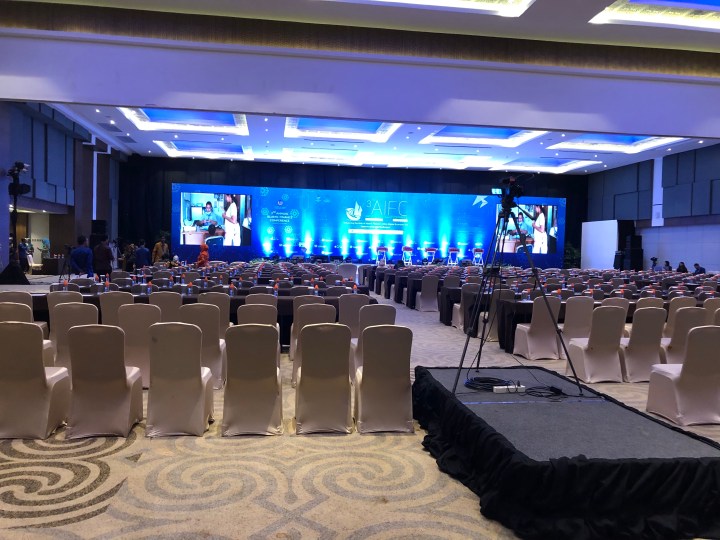 Saya dan Ayu tiba di Makassar hari Selasa, 3 Juli pukul 7 malam. Kami langsung menuju tempat menginap yang telah disediakan oleh penyelenggara, dan memutuskan untuk beristirahat sambil bersiap untuk menghadapi pekerjaan esok harinya. Sebelum tiba, kami telah mengumpulkan bahan bacaan dan menyusun glosarium kecil mengenai topik yang akan dibicarakan di AIFC ini, yaitu keuangan dan perbankan Islami atau syariah. Ini adalah salah satu hal penting yang harus dilakukan oleh juru bahasa sebelum mulai bekerja. Istilah-istilah penting yang terkait dengan topik bahasan acara harus diketahui dan dikuasai agar tidak gagap saat bekerja.