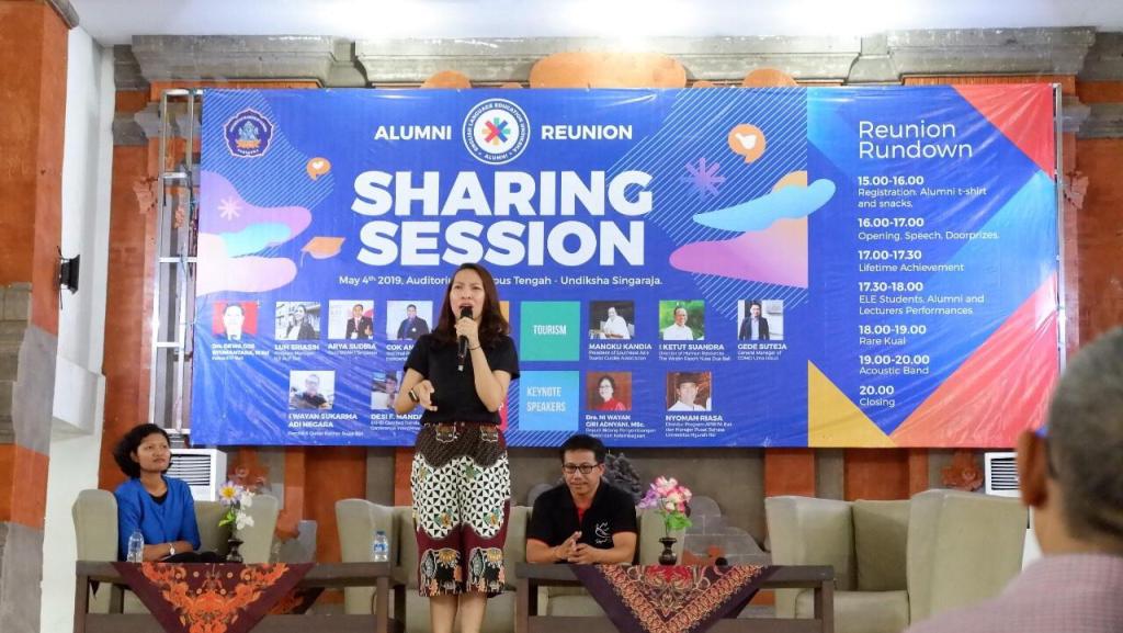 Saya menerima pertanyaan di atas dari dua orang mahasiswa ketika sedang mengisi acara beragih “JEJAK ALEKSHA” sebagai bagian dari rangkaian kegiatan Reuni Alumni ELE (English Language Education) Undiksha (Universitas Pendidikan Ganesha) pada 4 Mei 2019 lalu. Saya mendapat kesempatan mengisi sesi bincang-bincang mengenai Kewirausahaan dan Profesi Lain.